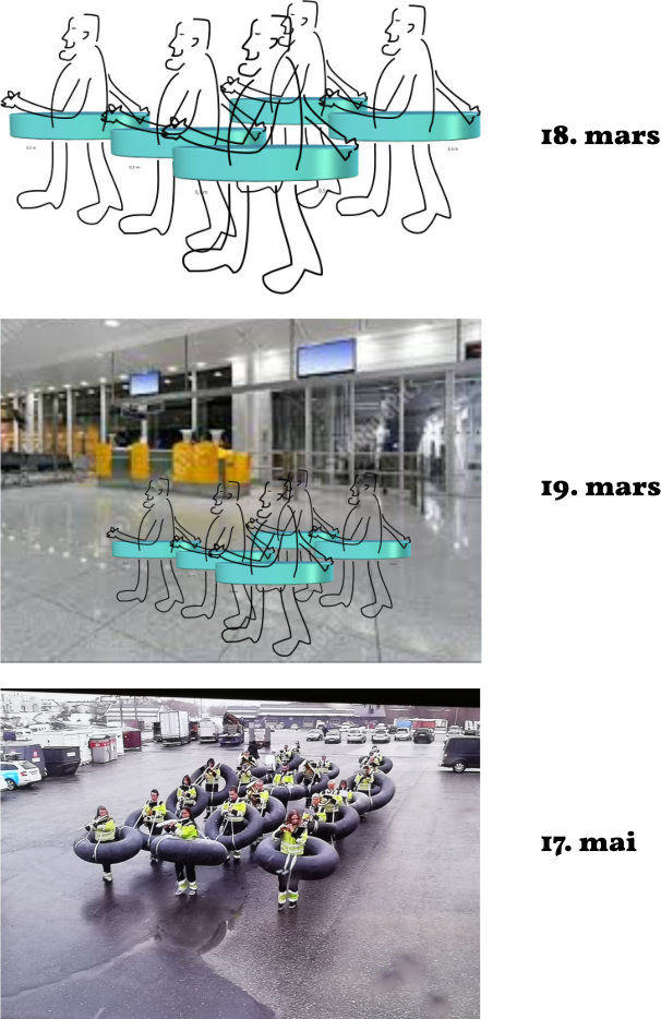 Eller, som vi sier i Trøndelag: Du ska itj stjæl ! Men til saken. I midten av mars begynte koronan for alvor å rulle ned over oss. Regjering og Folkehelsemyndigheter og fandens oldemor, ja hvem var ikke med i det massive oppbud av gode hjelpere og rådgivere i denne skjebnetunge tid for oss nordmenn. Ikke til forkleinelse for svært mange andre som hadde det SÅ mye verre (og fortsatt har). Men, det var altså av ytterste viktighet av vi fulgte alle råd og anvisninger som måtte komme fra høyere ort. Da gjorde jeg, som enhver lydig undersott vil gjøre i en sådan krise, finne på noe som kan bidra til å frelse verden – intet mindre. Ideen ble publisert på FB 18. og 19. mars. Det var ikke i mine tanker å søke patent på min oppfinnelse. Det hele skjedde med kun de edleste motiver bakom. Ikke en k(o)rone skulle tilfalle oppfinneren. Stor var min forskrekkelse her om dagen da jeg tilfeldigvis tittet innom Norge Rundt på vår riksdekkende TV-kanal NRK 1. En reportasje fra Brønnøysund som viste Brønnøysund Musikkorps på selveste 17. mai, ikledd MIN oppfinnelse ! Jeg var overhodet ikke blitt kontaktet på forhånd. Og ikke er de mine venner på Facebook heller (og slettes ikke nå). Jeg vurderer å sette i gang etterforskning for å finne ut om noen av mine venner på FB har DELT innleggene, og dermed uten å ane konsekvensene, gjort at folk i Brønnøysund fikk nyss om oppfinnelsen. Det må jo være en dekk/slangeforhandler der oppe som har gjort seg noen ekstra K(o)roner. Men nå har jo tiden gått, og jeg har fått skrevet av meg den verste frustrasjonen. Jeg tilgir dem, kystfæske e jo itj så bra længer heiller. Når det kokte som verst så må jeg tilstå at jeg brukte N-ordet (forbainna N…..lænninga). Som sagt alt er tilgitt. Å gommirengan sprekk væl no i varmen. Go hælg 🙂